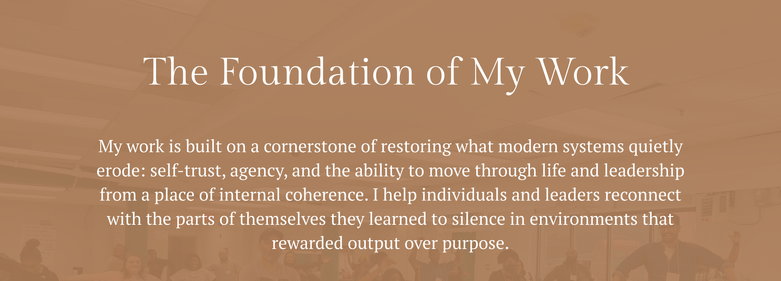 From that integration, I built a body of work grounded in research, lived experience, and years of coaching and consulting across sectors — work that centers purposeful alignment as the foundation for sustainable leadership, meaningful contribution, and lasting impact.